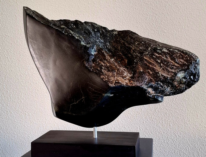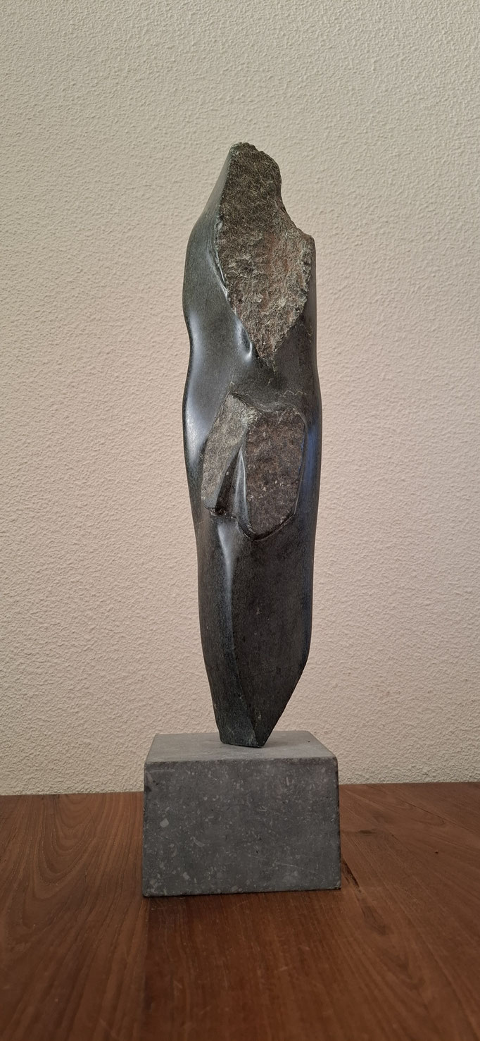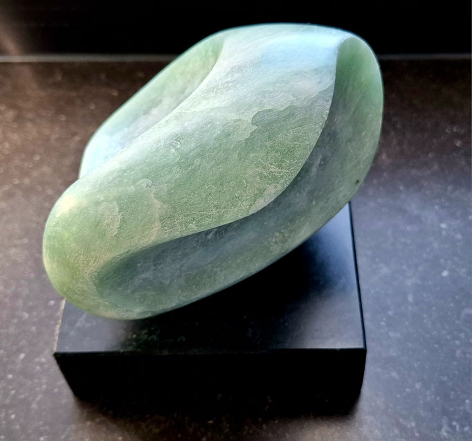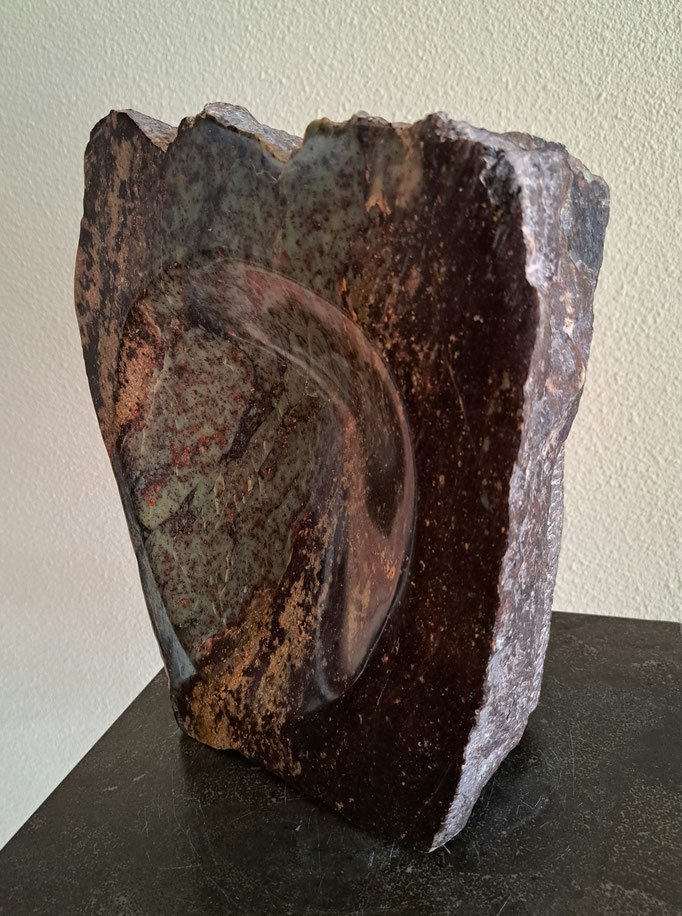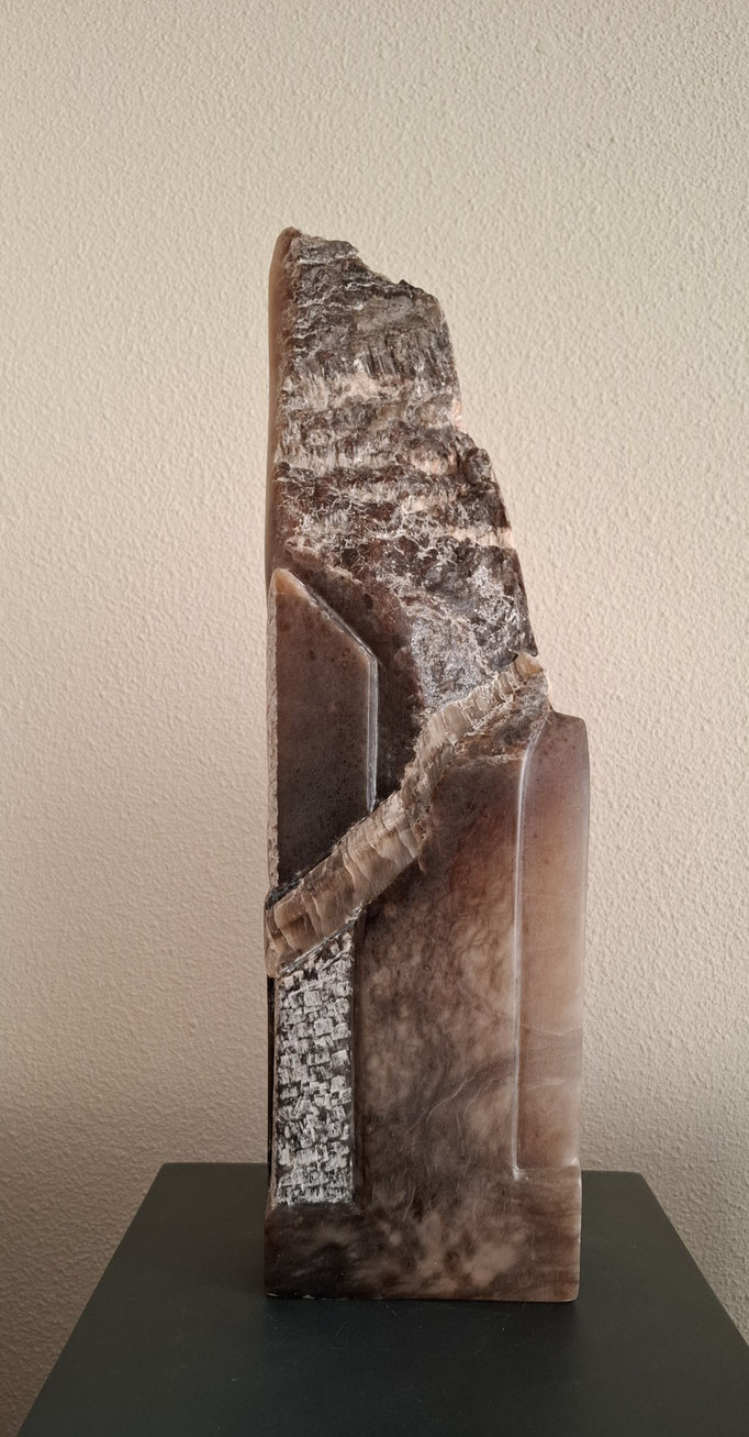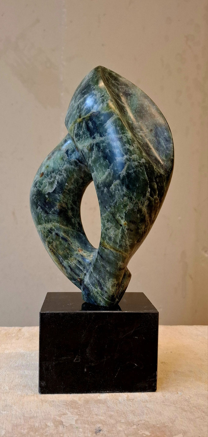Het resultaat van mijn beelden geeft een geweldige voldoening. De steensoorten die ik gebruik zijn bleurville, albast, serpentijn en marmer. De scherpe en zachte lijnen vormen een harmonie. Op